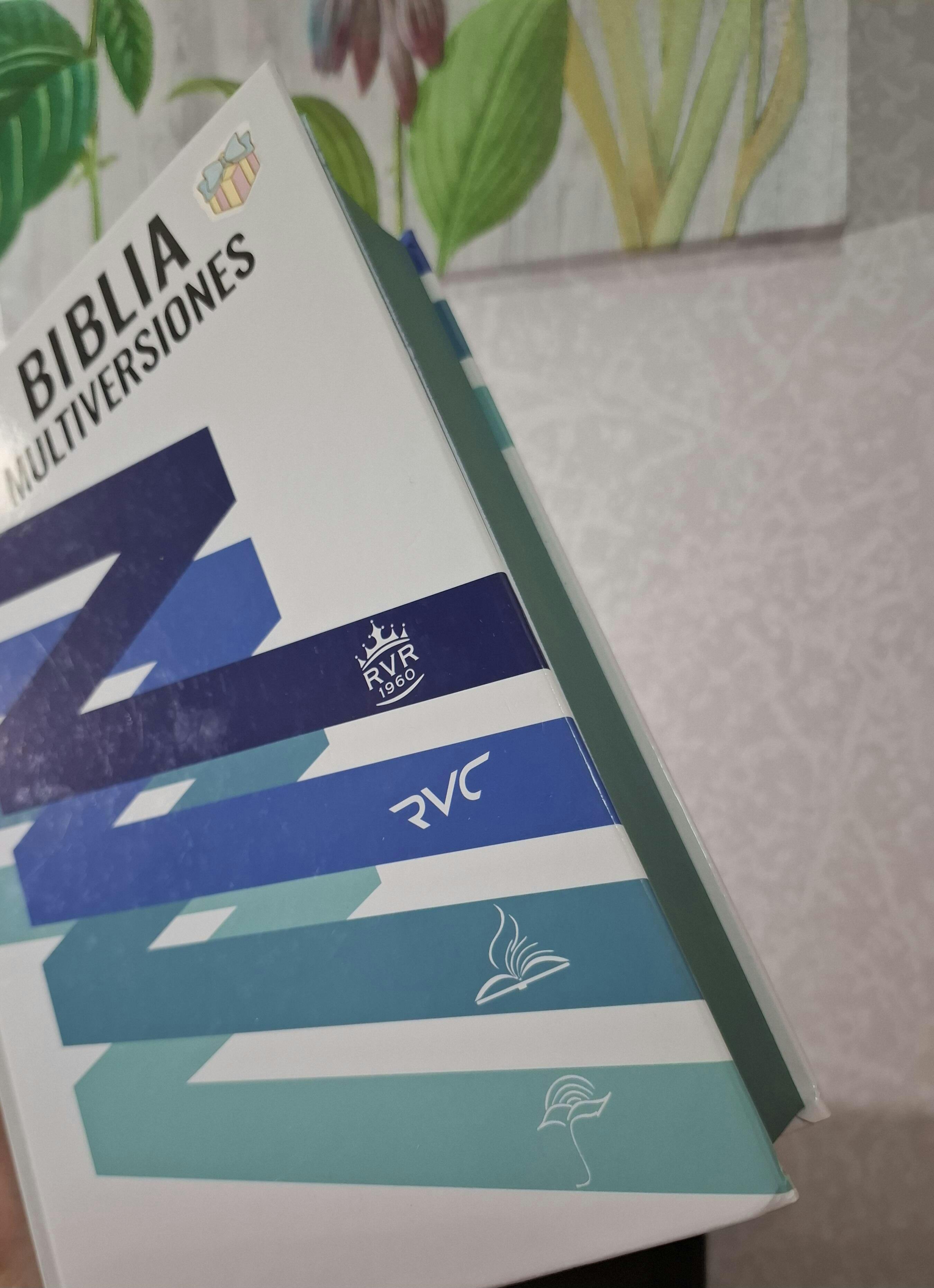 Es maravillosa!!! me encanta tener en un sólo lugar 4 versiones de una misma porción de la Biblia. Está confeccionada de manera que, al abrir la página, aparecen exactamente los mismos versículos desplegados (no es necesario dar vuelta la página), lo que la hace muy cómoda. Es tentador siempre leer las 4 versiones al mismo tiempo, así que se hace larga la lectura, pero es muy enriquecedor, porque, lo que parece confuso en alguna traducción, queda muy claro en otra. La recomiendo, y creo que está a muy buen precio, si consideramos que son 4 Biblias en una.