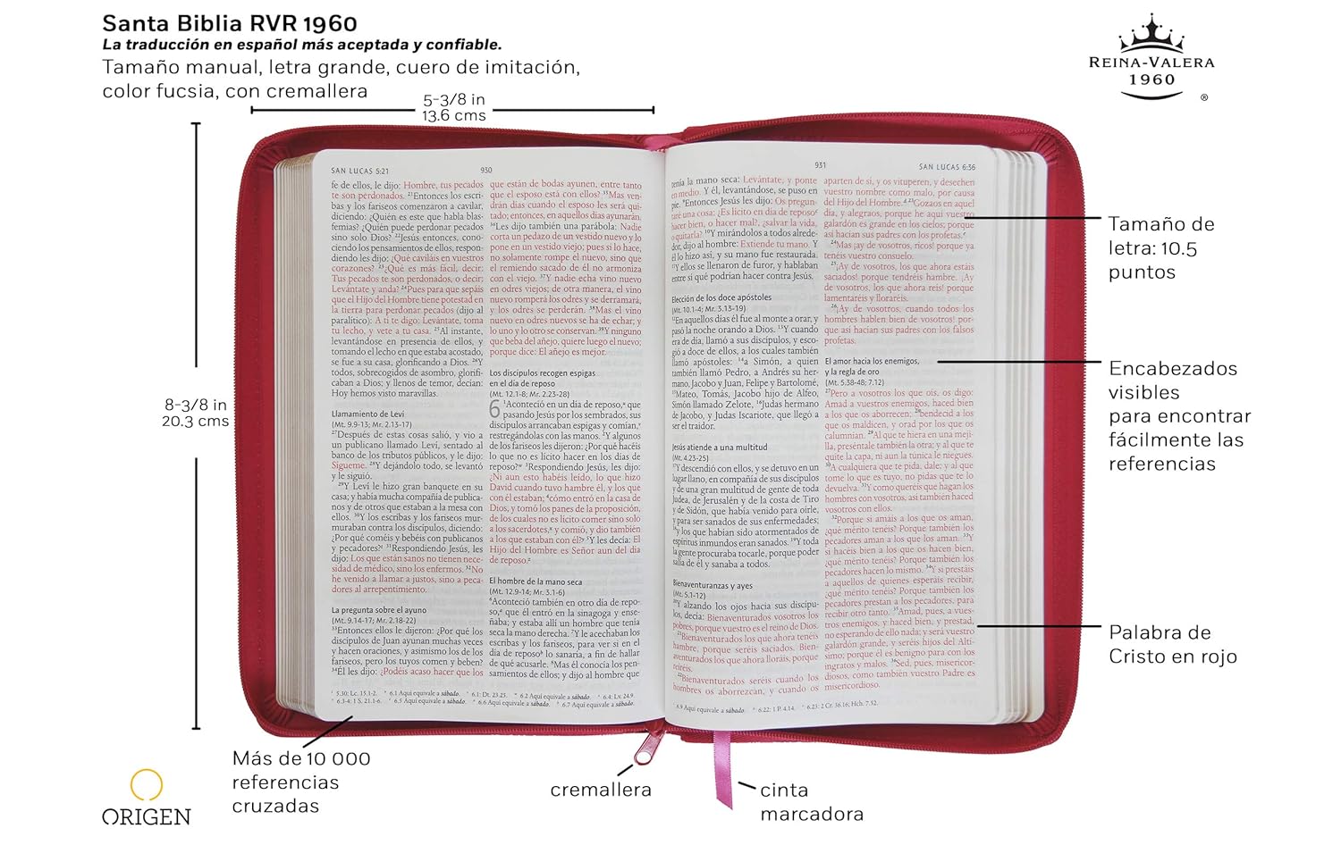 Esta elegante edición conserva la belleza clásica y la elocuencia de la Reina Valera Revisada 1960. Liviana, práctica y resistente, su encuadernación con cremallera la hace perfecta para acompañarte a todas partes, para la lectura diaria y el uso en la iglesia cada domingo.