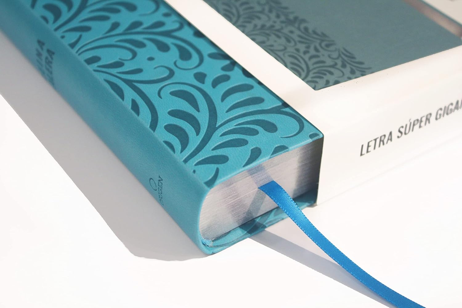 Biblia Reina Valera letra súper gigante, símil piel aguamarina