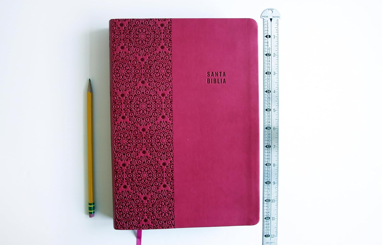 Biblia Reina Valera letra súper gigante, símil piel fucsia