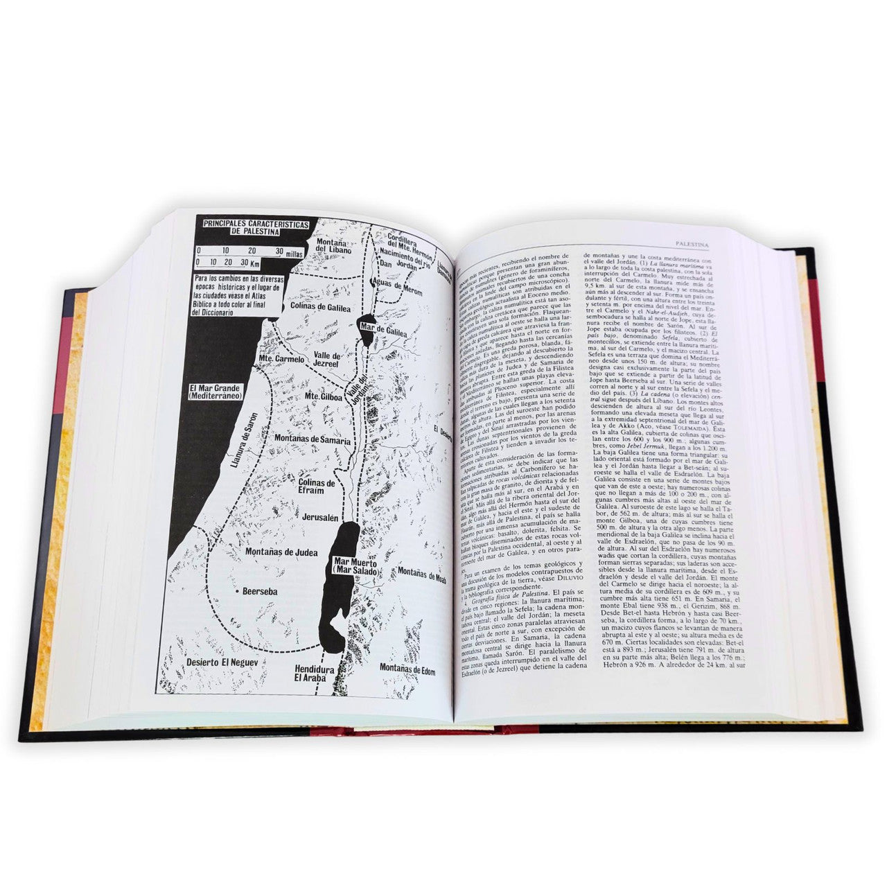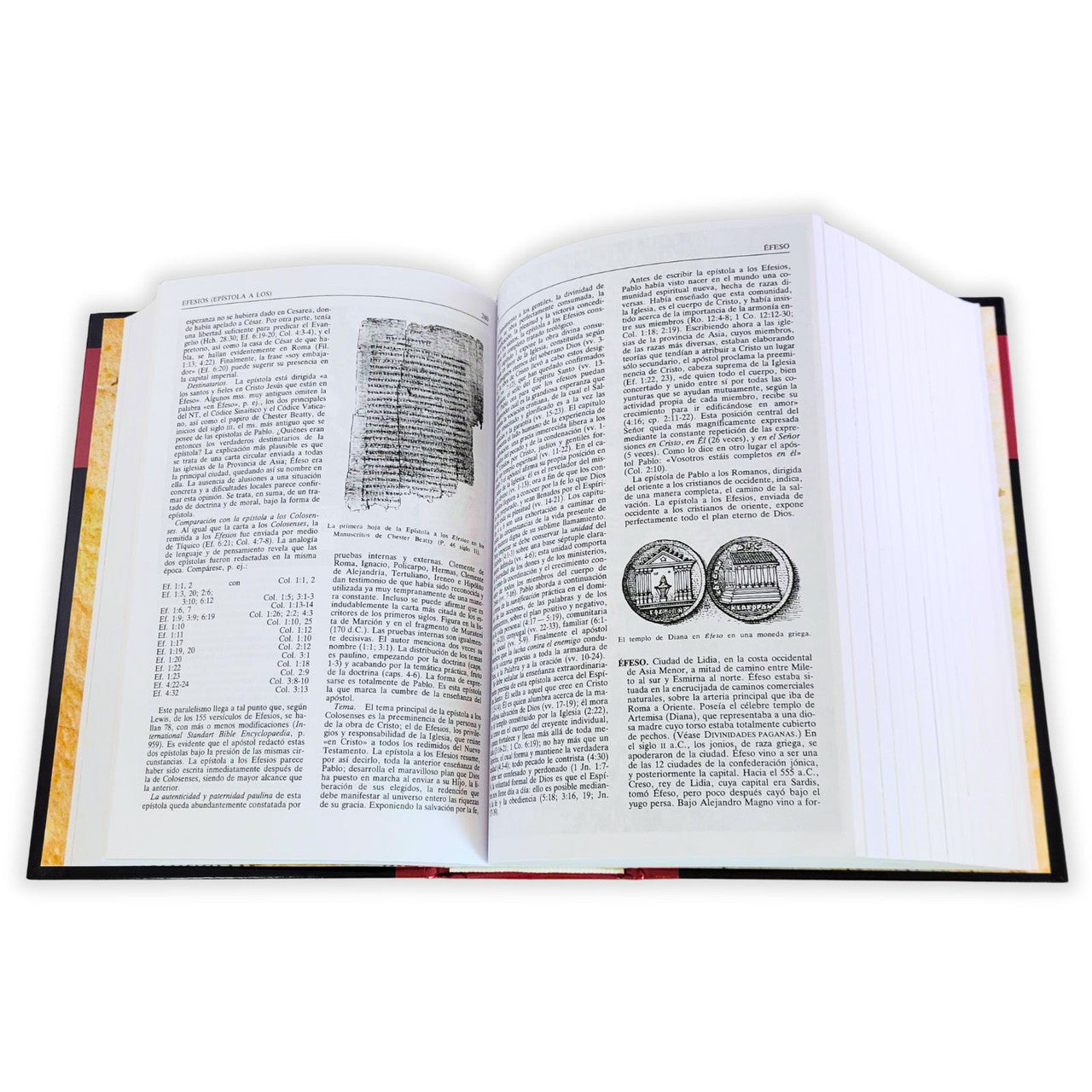 Más de 4.000 artículos de carácter enciclopédico. Analiza uno a uno todos los términos bíblicos y pasa revista, de manera amplia y profunda, a los descubrimientos actuales de arqueólogos y expertos en el campo bíblico, situándose al alcance de todos los lectores. Contiene abundantes grabados y mapas colocados dentro del texto correspondiente.
